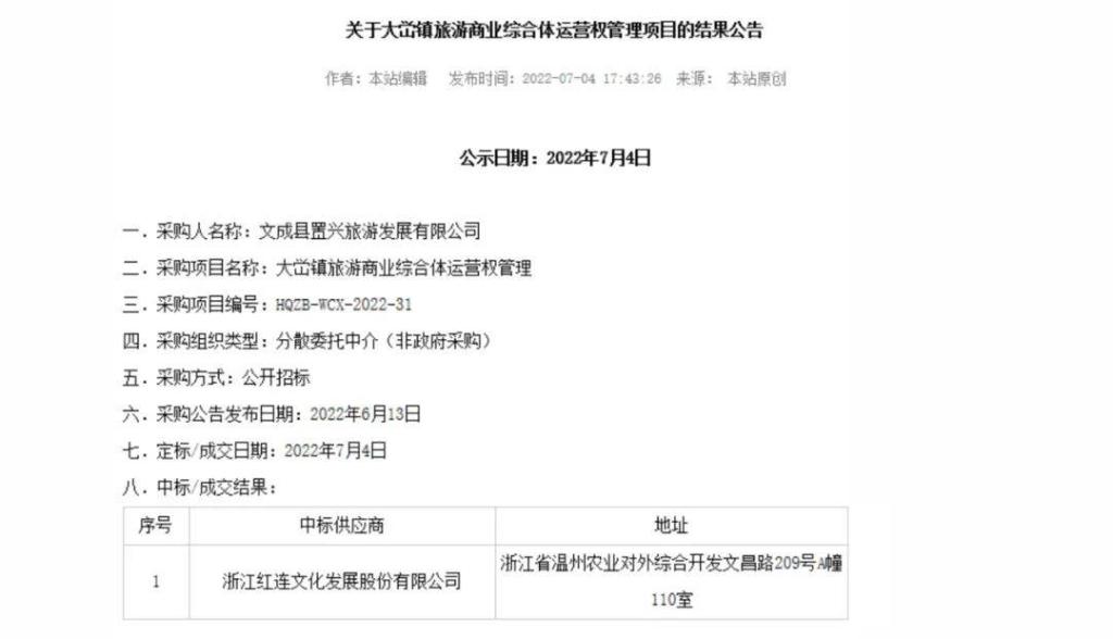 2022年7月4日,文成县人民政府公共资源交易专区发布中标(成交)结果公告,浙江红连文化发展股份有限公司成功中标大峃镇旅游商业综合体运营权管理。红连股份中标大峃镇旅游商业综合体运营权管理项目结果公告整个商业体致力于让市民吃上优质海鲜和时尚美食的同时,引导市民体验和感受海鲜背后的饮食文化和精髓,提升生活品质。项目将合理利用特色欧式空间与江畔的有利条件,打造文成县少有的亲水体验式美食城。红连地产大峃镇...