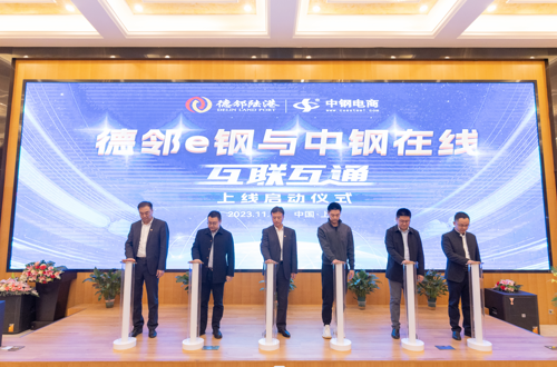 2023年11月18日下午,德邻e钢与中钢在线互联互通正式启动。德邻陆港供应链服务有限公司党委书记、董事长王锋,德邻陆港供应链服务有限公司党委副书记、纪委书记、工会主席王诤,上海鞍钢国际贸易有限公司总经理宋晓明,上海本钢冶金科技有限公司总经理梅群,上海中钢投资集团有限公司副总裁金翔,中钢银通电子商务股份有限公司高级副总裁马高华共同启动了代表双方平台互联互通的光柱。本次仪式由中钢银通电子商务股份...
