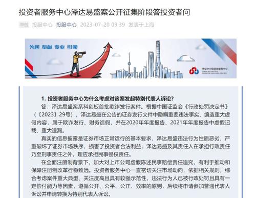 【投服中心公开征集泽达易盛案投资者授权委托】投服中心官微消息,7月19日,上海金融法院发布《泽达易盛案代表人诉讼权利登记公告》(以下简称普通代表人诉讼权利登记公告),现投资者服务中心公开征集投资者授权委托,申请参加泽达易盛案普通代表人诉讼,并申请转换特别代表人诉讼。(界面新闻)