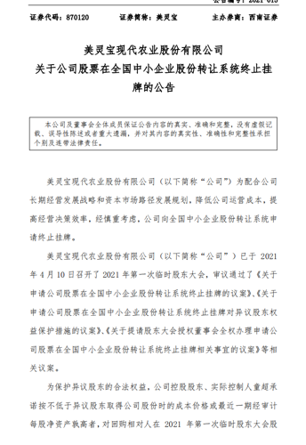 $美灵宝(SZ870120)$新三版设立后,湖北美灵宝现代农业联合重庆合川濮信集团利用政策漏洞从事非法股权转让、推荐行为。企业及大股东狼狈为奸明知企业难以为继的情况下实施出售股权的变相融资行为。一但企业资不抵债或出现退市等情况,就会使得投资者的投资款血本无归。而中介机构明知非法股权转让、推荐行为属于刑法规定的非法经营行为,在东窗事发后对企业进行注销以逃避刑事打击。故在签订股权转让合同或股权代持...
