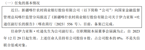 喀什银行任命伊力亚斯·吐逊为公司副行长 2023年上半年公司净利2710.71万