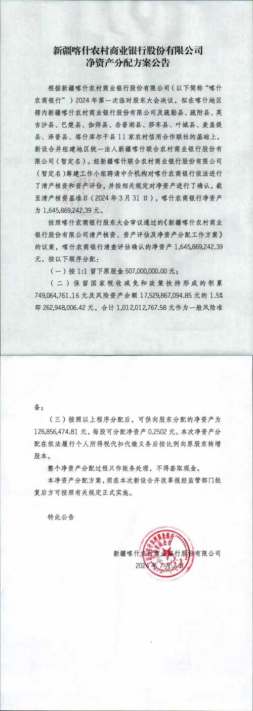 2024-11-1313:33·中国经济时报农村金融11月12日,国家金融监督管理总局新疆监管局批复同意筹建喀什农村商业银行股份有限公司(以下简称“喀什农商银行”),这标志着新疆农村信用社第四家以地区为单位统一法人农商银行正式进入筹建阶段。喀什农商银行是在原喀什地区辖内12家农信机构的基础上,以新设合并方式组建,成立后资本净额超80亿元,资产规模近700亿元,将成为南疆第二大法人银行、疆内第六大...