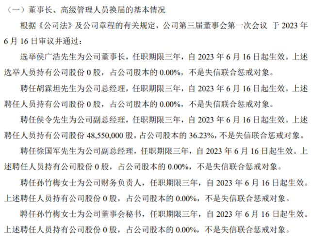 挖贝网6月16日,怡人纺织(871957)发公告称,根据《公司法》及公司章程的有关规定,公司第三届董事会第一次会议于2023年6月16日审议并通过:选举侯广浩为公司董事长,聘任胡霖坦为公司总经理,聘任侯令、徐国军为公司副总经理,聘任孙竹梅为公司财务负责人、董事会秘书,任职期限三年,自2023年6月16日起生效。根据《公司法》及公司章程的有关规定,公司第三届监事会第一次会议于2023年6月16日审议...