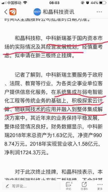资讯 和晶科技子公司中科新瑞拟终止在新三板挂牌