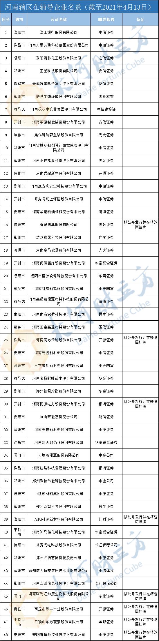 最新!河南48家在辅导企业最新名录公布