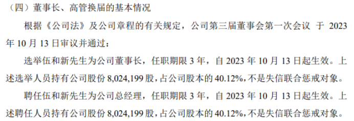 天源股份选举伍和新为公司董事长 2023年上半年公司亏损327.15万