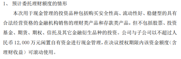 挖贝网3月13日,华夏电通(873588)近日发布公告,本次用于现金管理的投资品种包括购买安全性高、流动性好、稳健型的具有合法经营资格的金融机构销售的理财类产品和存款类产品,但不包括股票、投资基金、期货、期权、信托及其它金融衍生品种的投资。公司与子公司以不超过人民币12,000万元闲置自有资金进行现金管理,在决议授权期限内该资金额度(含理财收益)可滚动使用。公司拟使用闲置自有资金进行现金管理,可有...