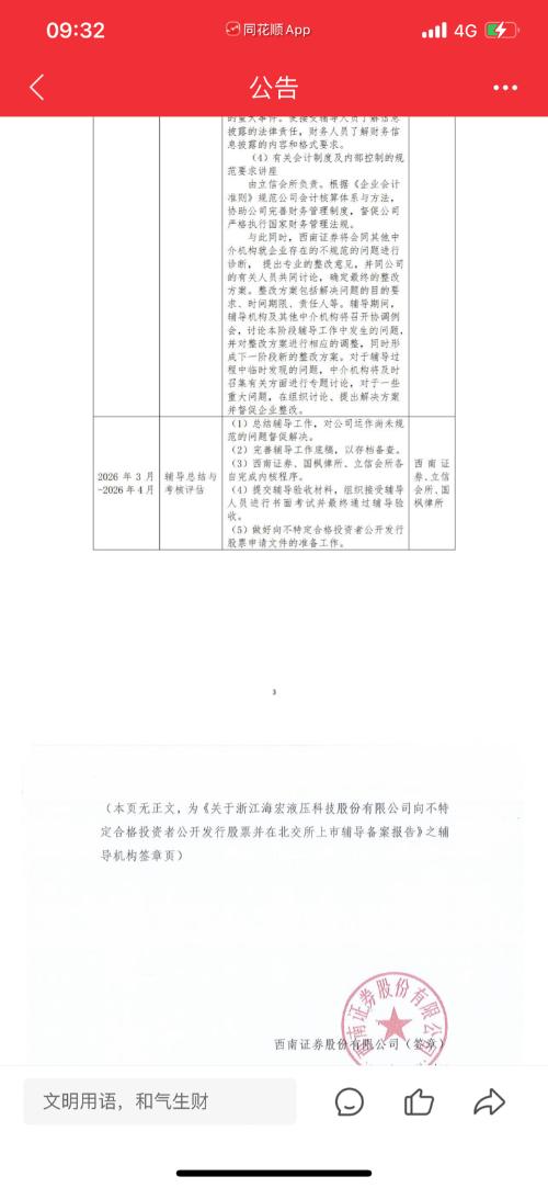 公告 海宏液压:关于与西南证券股份有限公司签订辅导协议暨申请公开发行股票并在北交所上市辅导备案的公告