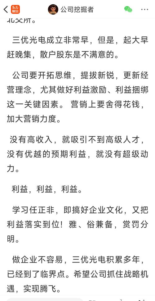 $三优光电(SZ873946)$ 持仓未动,一旦业绩上来,我会立即加仓。 公司在行动,点赞!