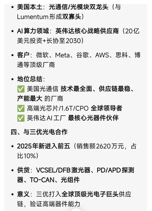 $三优光电(SZ873946)$ Coherent,美国顶级光通信商,英伟达2026年3月投资20亿美元给它。 美国顶级光通信产品提供商Coherent已经是三优光电前五大客户,这件事,具有巨大广告效应。