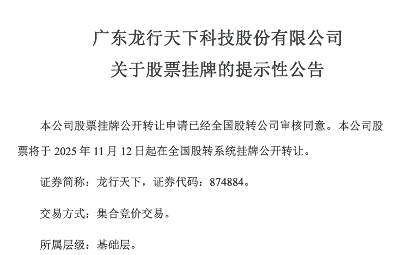 解读新三板挂牌企业“龙行天下”, 挂牌时间2025-11-12