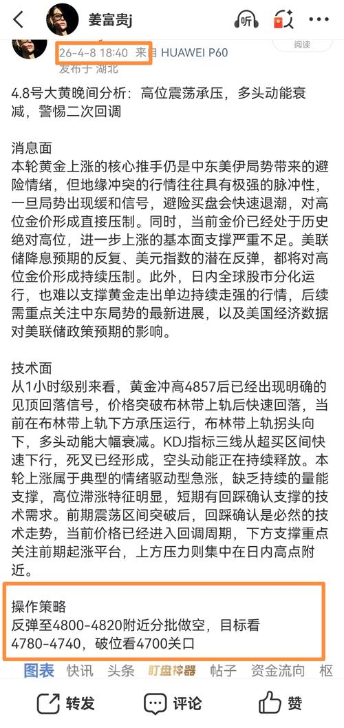 富贵晚间提前布局的黄金空单,精准拿捏,行情最高反弹4807,最低下探4768,完美抵达目标区间,点位丝毫不差,方向完全正确,进场就赚米,这波落袋39点