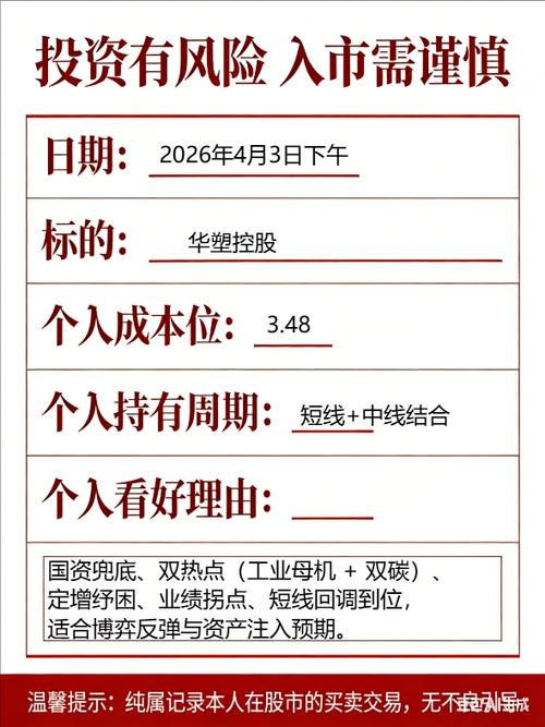 4月3日下午(仅代表个人思路,不构成任何投资建议) 今天买华塑控股逻辑很清晰: 湖北国资+6亿定增,安全兜底、财务大改善 工业母机+双碳+液冷,三大热点集一身 短线跌透了(3.5元),安全边际高、反弹概率大 资产注入+扭亏预期强,随时可能催化涨停 小市值、高弹性,适合做共赢期权小博大。#实盘记录##投资随笔#...