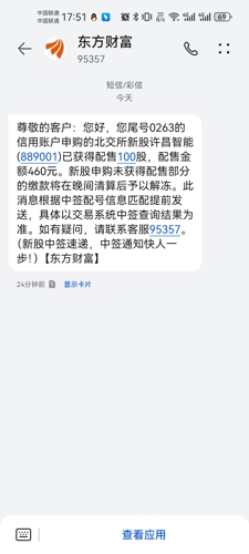 $许昌智能-W(SZ889001)$150w资金,配售100股,我擦,就算去国债逆回购也一千多块了,这浪费表情,手续费都不够,只能留作纪念了