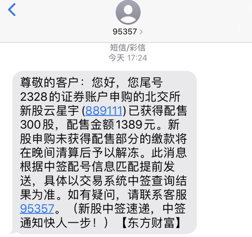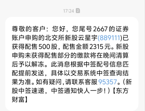 $云星宇-W(SZ889111)$请问大家,我是不是中了15万股?不懂