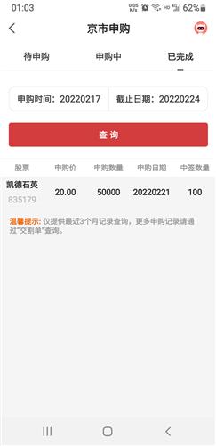$凯德石英-W(SZ889168)$申购5万股好像中了100股
