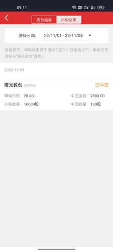 申购10000股,中了100股,蚊子腿,不知道能不能买个鸡腿