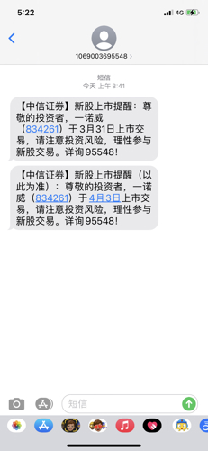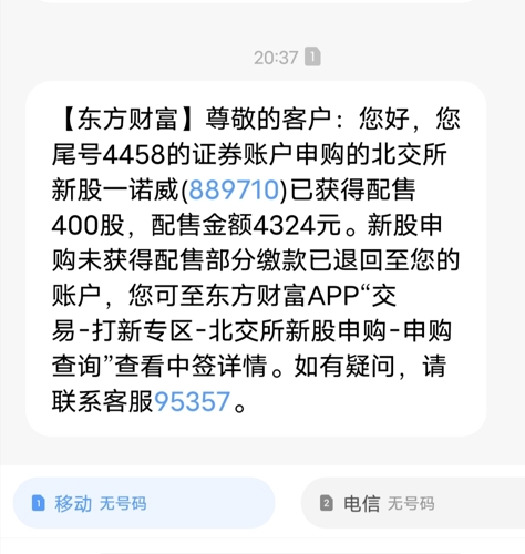 $一诺威(SZ889710)$第一次抽签中了400股,希望吃肉