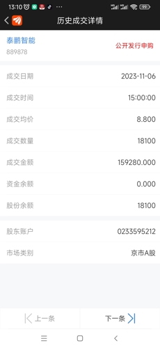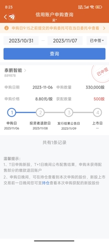 $泰鹏智能-W(SZ889878)$这个是中签了吗?