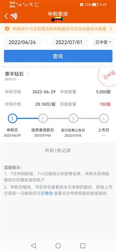 $惠丰钻石-W(SZ889955)$今晚才翻开手机,竟然中了100股
