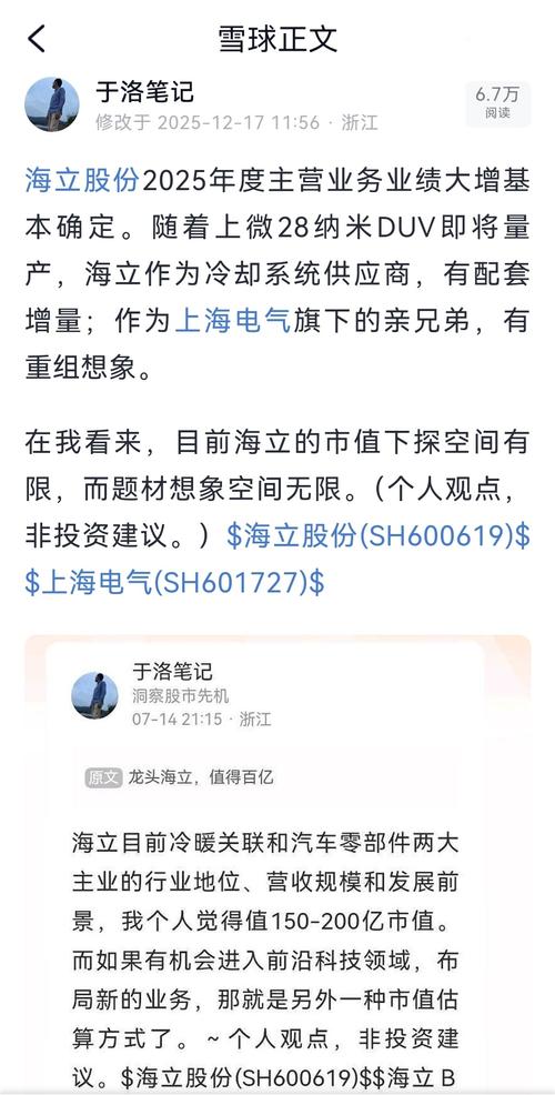 $海立股份(SH600619)$看到英维克5亿左右的利润对应千亿的市值。同样做温控设备的海立股份,如果2026年净利润大增至3亿元以上,是否配得上300亿元的市值?$英维克(SZ002837)$$海立B股(SH900910)$