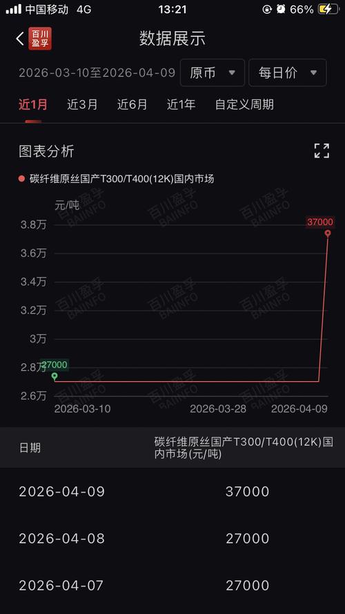 $吉林碳谷(SZ920077)$4月9日突然跳涨碳纤维原丝价格突破3.7万元每吨。较上周暴涨41%。