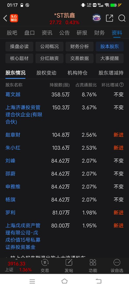 $*ST凯鑫(SZ300899)$就四千多家人们,这控盘