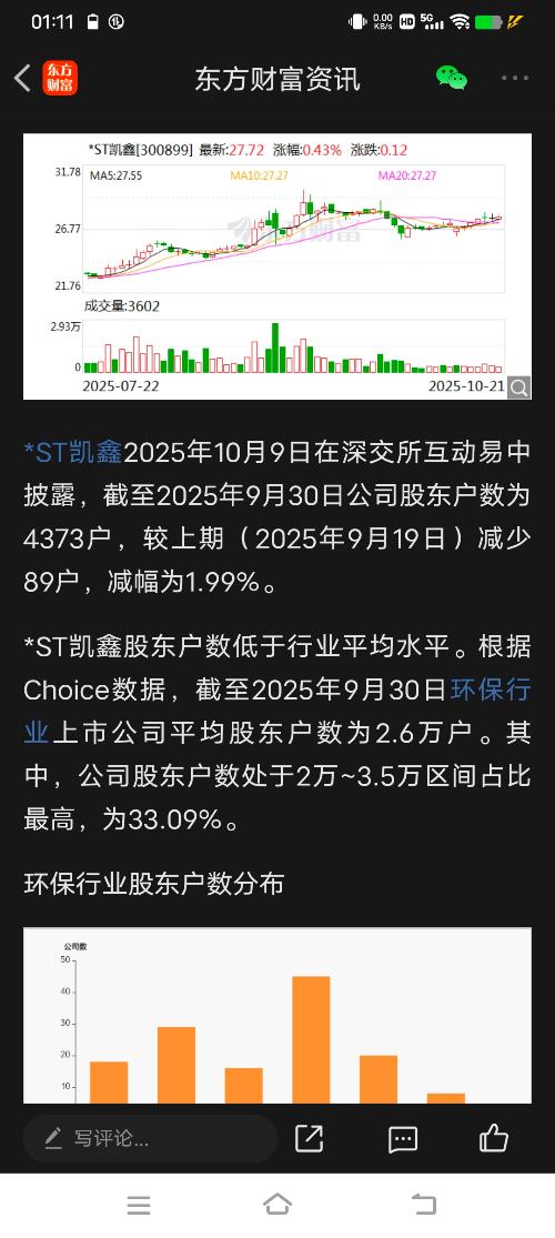 【问】董秘,您好!请问公司截至10月20日的股东人数是多少?谢谢【答】*ST凯鑫:您好,截至2025年10月20日,公司股东总户数为4,391户,感谢您的关注!