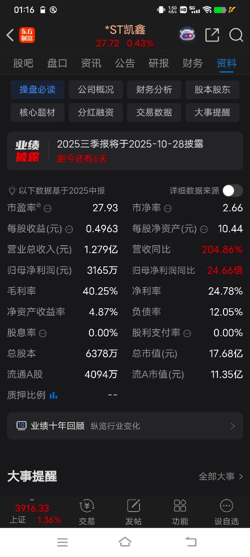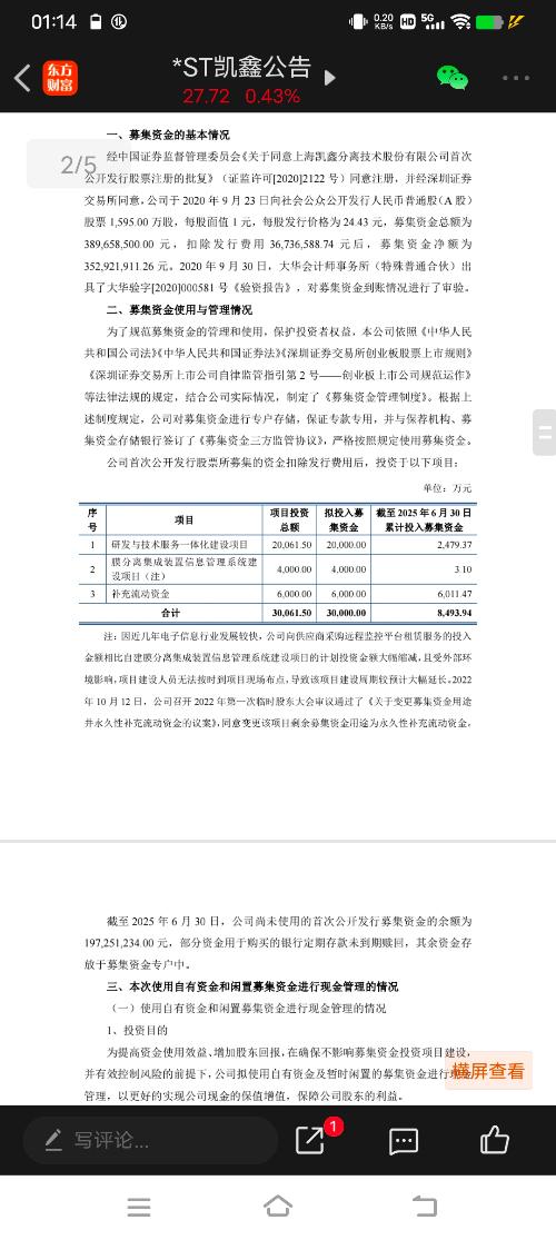 $*ST凯鑫(SZ300899)$ 2025中报 10.44/0.496元 净利润3165万 2024.年3季报净利润712万 3165/712=4.445倍【444%】 2020.9.3公开募集资金 3.5292亿, 实际投入2480万元,补充流动6000万 剩余资金 35292-8480=26812万元 35292-2480=32812万元 2025年股价波动 17.23——29.78 29....