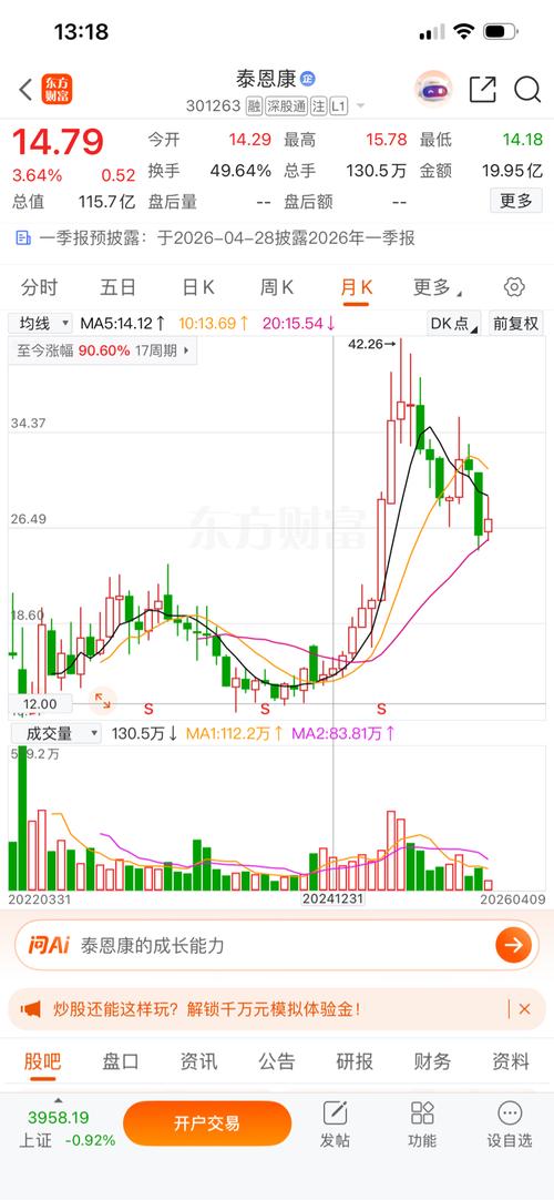 $泰恩康(SZ301263)$这立机等418一季报业绩雷完了再找鸡会吧!