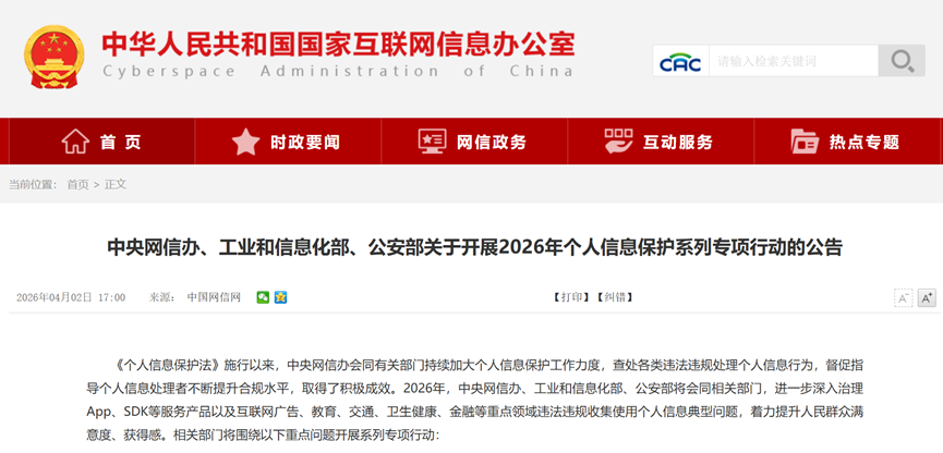 数据安全综合治理平台 近日,中央网信办、工业和信息化部、公安部联合启动2026年个人信息保护系列专项行动,其中“个人信息相关违法犯罪案件专项打击治理”备受业界关注:本次行动将围绕信息泄露、信息倒卖、信息使用三个核心环节,对全链条违法犯罪实行“零容忍”,行业“内鬼”将成为重点打击对象。80%以上的数据泄露都来自内部人员的违规操作,而且往往是在业务流转的某个不起眼的环节出了问题。 图注:《中央网信办、...