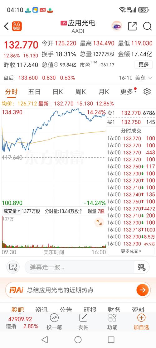 美股应用光电大涨超10%,创历史新高!