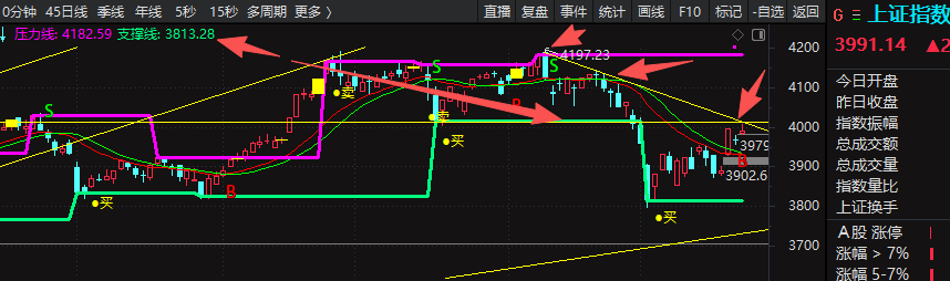 昨天开盘买了天味食品,中午回来手一抖把午评发天味吧了。现在搬回来。 上午出去办事没有看盘,简单聊一下。 市场上午冲高回落是是意料之中的事情。我们可以看看下图,今天的最高点其实是双重压力共振的结果:第一个压力是横向颈线位,这个位置我画出来了,是4015点,3月19号被破掉后变成了反压;第二个压力位是下降通道线的上轨,这个位置和颈线位今天正好交叉。今天上证整体表现一是在没有量的情况下要突破两个重要压力...