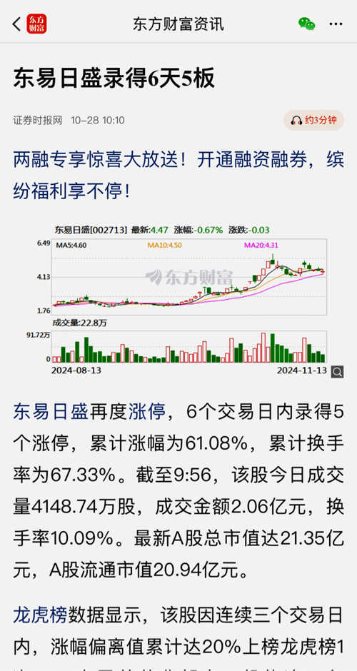 2.有涨停基因,因盘小主力庄家游资易控盘,过去二个月出现“六天五板”纪录(请见图片显示)。