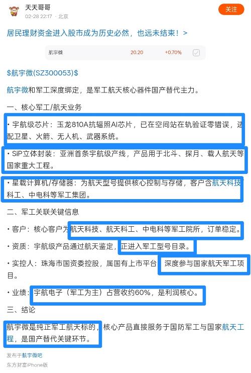 打破老M垄断:航宇微300053AI芯片(国内唯一太空在轨验证并量产)技术全面适配高超音速/战术/防空导弹,制导已批量供货三体计算星座(太空计算)、低空无人机(飞行器)导弹、航天科技、航天科工、登月、空间站、深空、火箭、太空挖矿机器人、中电科,已签和未来订单达数十亿(每颗星或飞行器无人机导弹必备制导AI芯片)。中国星链唯一太空算力英伟达-航宇微300053低轨卫星链战争的秘密武器。航宇微是低空和亚...