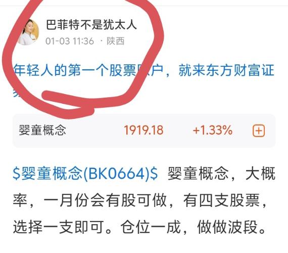 $婴童概念(BK0664)$婴童概念,大概率,一月份会有股可做,有四支股票,选择一支即可。仓位一成,做做波段。
