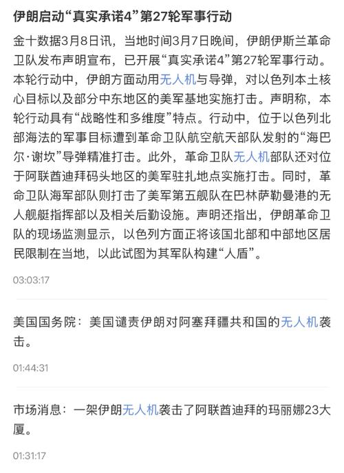$稀土(BK1626)$ $铜(BK1615)$ $无人机(BK0704)$ 很多人最近只看到一个新闻: 中东局势再次升级。 但如果你去看海外媒体、美股市场以及全球大宗商品走势,会发现一件很有意思的事情: 全球资本已经开始提前行动了。 在地缘冲突升级的时候,资金往往不会乱买,而是会非常集中地流向几类资产。 复盘过去几十年的战争行情,这个规律几乎从未改变。 一、第一类资产:能源 战争最直接影响的,就...