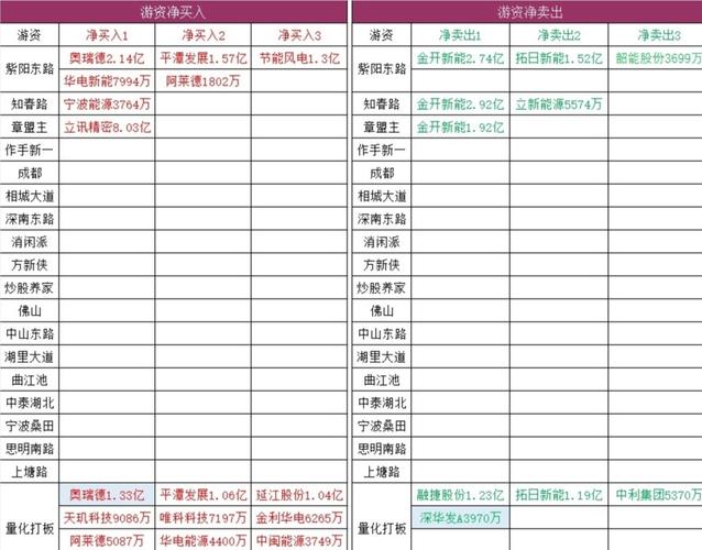 (一)游资 1、葛卫东 鼎龙股份icon:净买入1.12亿; 九安医疗icon:净买入9527万; 再升科技icon:净卖出6993万; 2、章盟主 融捷股份icon:净买入5644万(三日); 舒华体育icon:净买入2125万; 神剑股份icon:净卖出2514万; 赣锋锂业:净买入1.50亿; 九安医疗:净买入852万; 广西能源icon:净买入8437万(三日); 云南锗业icon:净买入...
