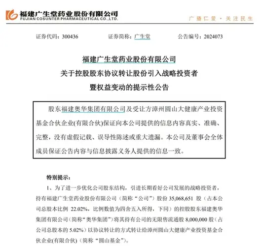 广生堂连亏3年,为何能被“药中茅台”看中?作者|姚悦编辑丨武丽娟来源|野马财经“药中茅台”片仔癀(600436.SH)将“曲线”入股“肝病药神”广生堂(300436.SZ)。11月15日,广生堂公告称,为引进战略投资者,公司控股股东福建奥华集团有限公司(下称:奥华集团)拟将所持广生堂5.2%的股份以协议方式转让,股份转让总价款1.96亿元。受让方漳州圆山大健康产业投资基金合伙企业(有限合伙...