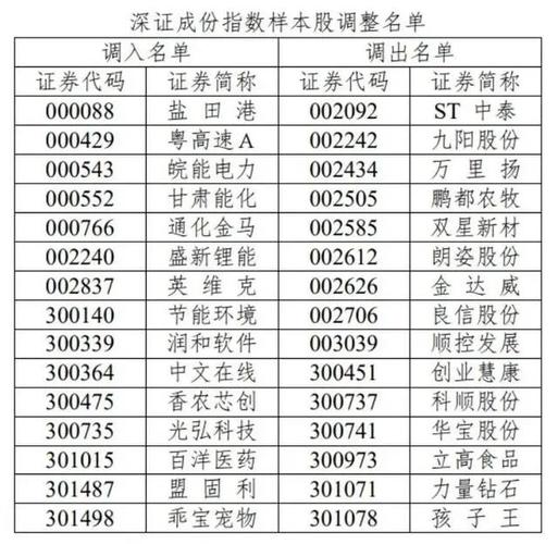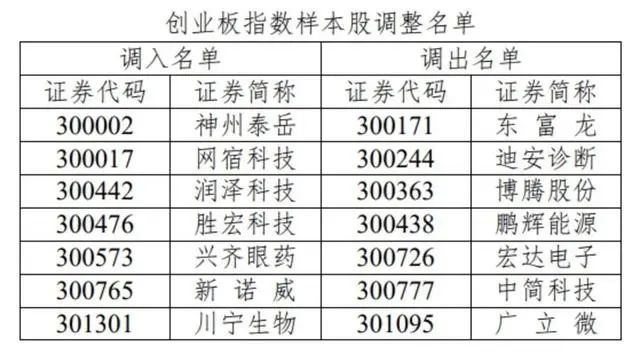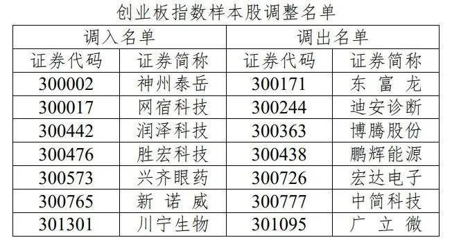 来源:证券时报网2024-06-1619:19A股系列重要指数将迎来样本股调整!6月3日,深圳证券交易所及其全资子公司深圳证券信息有限公司发布公告,根据指数编制规则,综合考量深市公司的市值代表性、证券流动性、经营合规情况等因素,将对深证成指、创业板指、深证100等指数(以下统称“深市核心指数”)实施样本股定期调整。据悉,本次调整将于明日正式实施,深证成指将更换15只样本股,调入主板公司7家,...