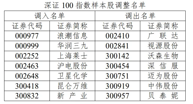 深交所:调整深证成指、创业板指、深证100等指数样本股