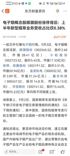 $顺灏股份(SZ002565)$其实顺灏股份一说到电子烟,今天就能领涨,原因不是他现在在电子烟上的收入多少。最主要的是它手握加热不燃烧电子烟的专利,中烟要出口创汇,电子烟出口创汇,就需要这个专利。大家也都知道说顺灏股份在电子烟上现在收入占比确实也不高。现在股价低位,半年7亿多营业额,几千万利润,没有退市风险,拿着没有太大问题,实际不行,哪怕等下半年老美降息,等外面的资金回来推高股市,也是极大的...