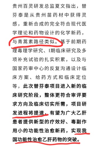 $贵州百灵(SZ002424)$替芬泰学理论和药物设计的化学新药,与青蒿素路径类似。贵州百灵研发总监夏文指出,替芬泰是从贵州苗药材中获得灵感,重新合成的完全符合现代医学理论和药物设计的化学新药,与青蒿素路径类似。基于前期药理毒理学研究、Ⅰ期临床研究及多项补充试验的扎实积累,以及与国家药审中心的反复沟通设计临床方案、给药方式和临床定位等,此次替芬泰项目进入新的临床研究阶段,整体更符合审评要求方向...