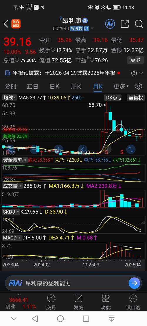 $昂利康(SZ002940)$$PCB(BK0877)$ 昂利康二连板涨停投资分析报告 一、核心事件:强势涨停与市场表现 昂利康今日以39.16元的价格强势封上涨停板,录得二连板,涨幅达10.00%。全天股价高开高走,最终以最高价收盘,显示出极强的多头动能。 今日关键数据: -现价:39.16元 -换手率:17.74%(交投活跃,筹码交换充分) -成交额:12.37亿元 -市盈率(动):76.26...