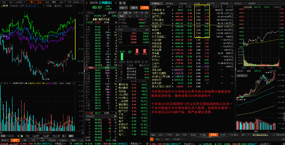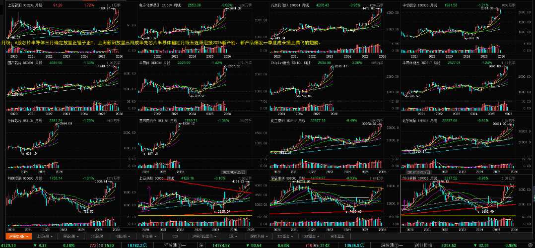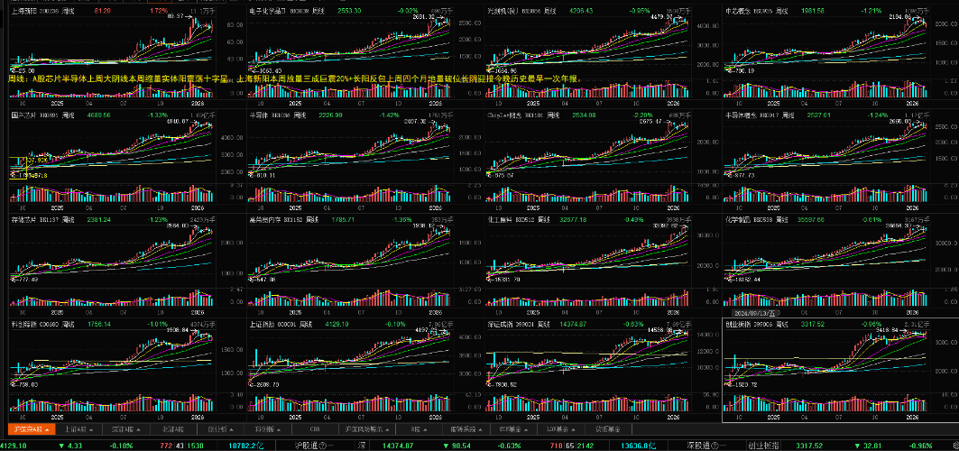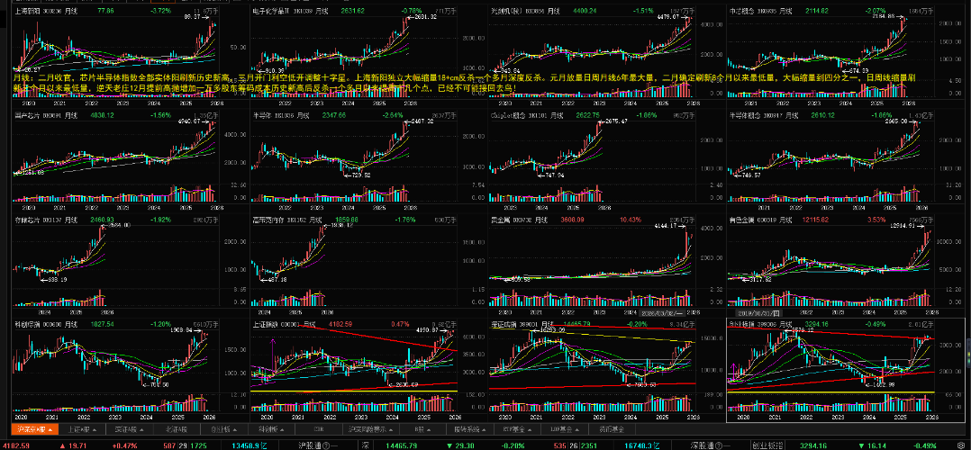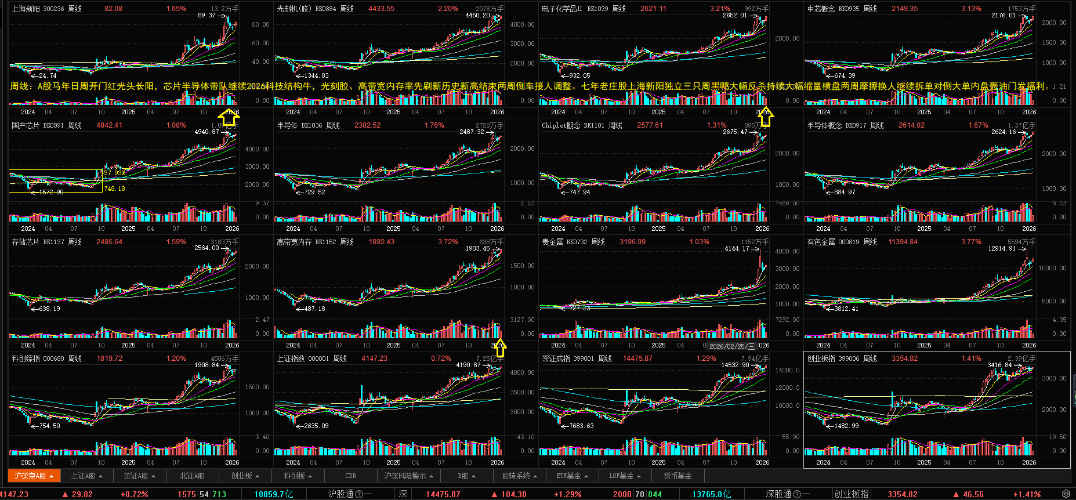 $中芯概念(BK0935)$$光刻机(胶)(BK0884)$$国产芯片(BK0891)$ 马年周月线芯片半导体光头周月线大阳线再次刷新历史新高完美收官,继续演绎2026科技结构牛。 七年独立A杀庄股新阳12月以来老庄提前高抛独立反杀一个多月跑输芯片半导体换庄进入尾声。迎接历史最早一次年报见证2025新产能、新产品爆发进展。