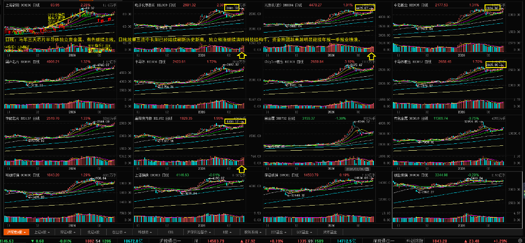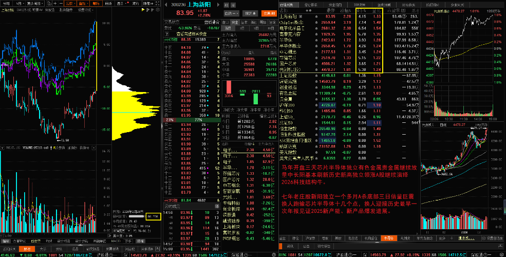 $中芯概念(BK0935)$$光刻机(胶)(BK0884)$$电子化学品Ⅱ(BK1039)$ 马年开盘三天芯片半导体独立有色金属贵金属继续放量中长阳基本刷新历史新高独立领涨A股继续演绎2026科技结构牛。 七年老庄股新阳独立一个多月A杀底部三日倍量巨震换人跑输芯片半导体十几个点,换人迎接历史最早一次年报见证2025新产能、新产品爆发进展。