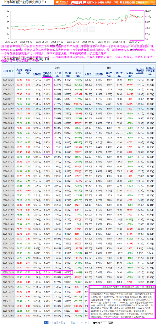 - 2025Q4五大牛散张朦彻底被挤出前十,金叶飞/金叶玲玩低吸高抛略加仓,孙慧明/杨燕灵略增加或也是低吸高抛加了仓。前十增加二百多万股。25Q4股东人数中下旬大幅增加6000多居然不是牛散提前高抛。躲在前十之外的七年挖坑老庄和四五年以上五个牛散没关系?12月中旬到1月中旬大幅上涨提前高抛新增股东10131户,超过25+%二级市场筹码被提前高抛,成交均价71.64反杀两个月挖坑21.7cm,到二月底股东人数反杀收割6160户,成交均价80.31,七年挖坑老庄A杀真的追高十几个点收割回去二级市场近13%筹码?直接增加成本约2.5亿?