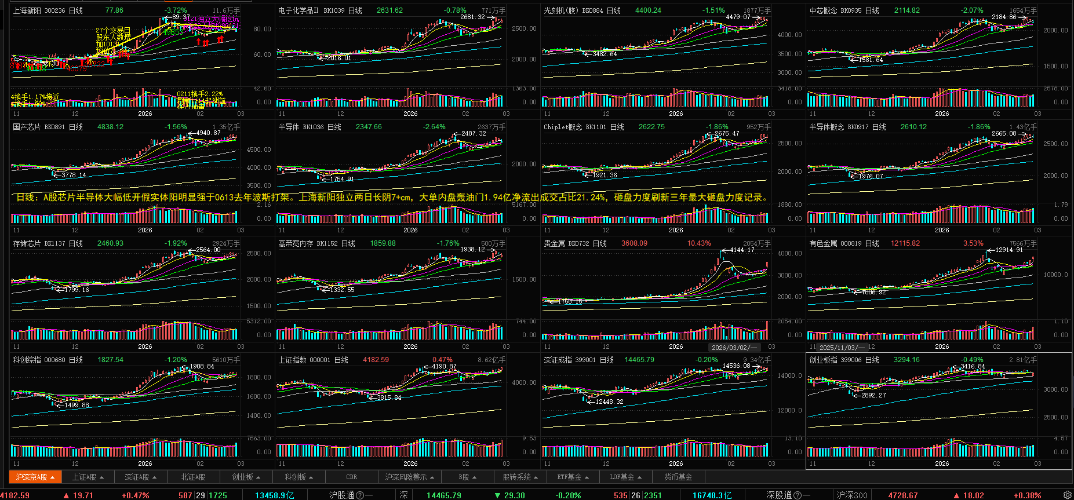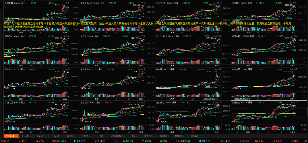 $中芯概念(BK0935)$$光刻机(胶)(BK0884)$$电子化学品Ⅱ(BK1039)$ 马年首周芯片半导体产业链带队陆续刷新历史新高独立有色贵金属主线继续演绎2026科技结构牛 七年老庄股上海新阳提前一周独立深度反杀跑输芯片半导体十几个点坑底第三天倍量巨震洗人迎接历史最早一次年报见证新产能、新产品爆发进展。