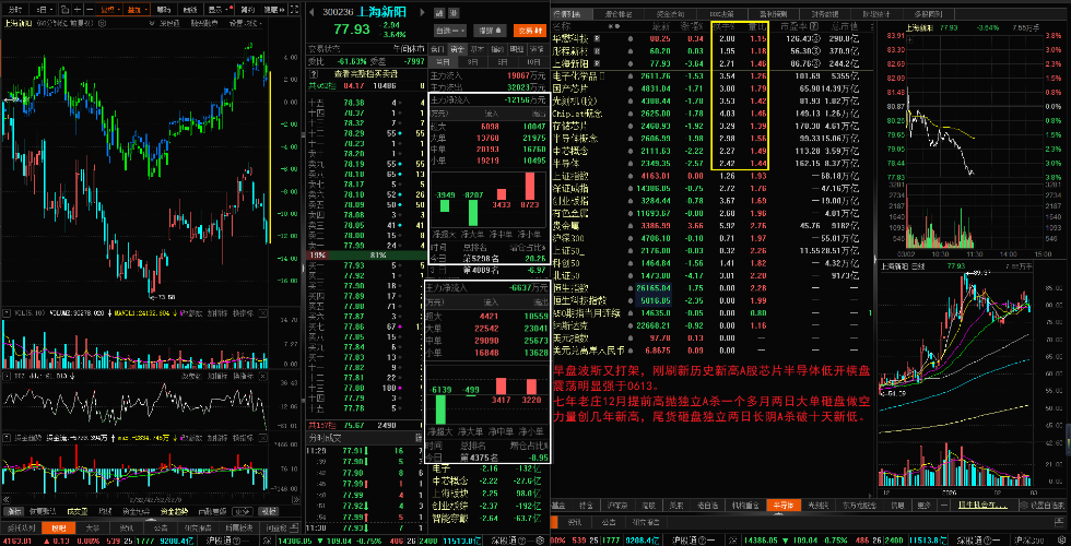 $中芯概念(BK0935)$$光刻机(胶)(BK0884)$$国产芯片(BK0891)$ 别家又打架,刚刷新历史新高A股芯片半导体低开横盘震荡明显强于0613。 七年老庄12月提前高抛独立A杀一个多月两日大单砸盘做空力量创几年新高,尾货砸盘独立两日长阴A杀破十天新低。