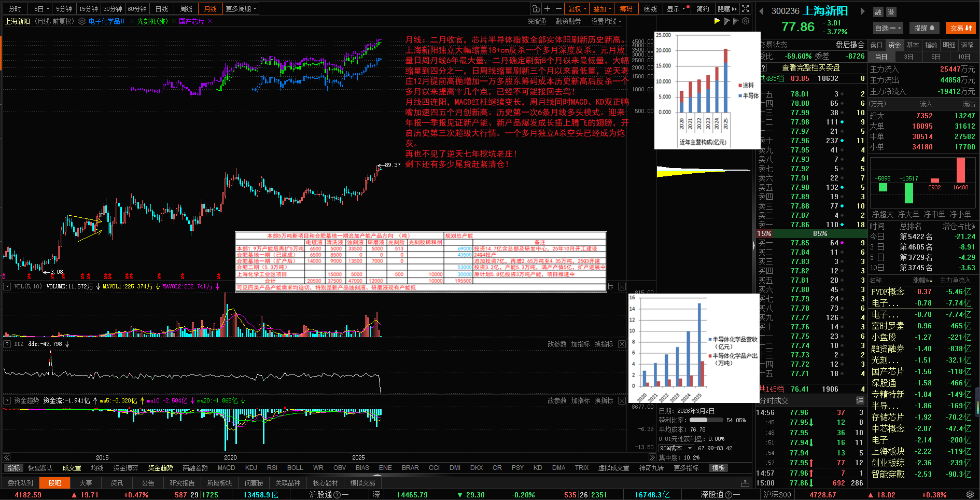 14赞- 月线:二月收官,芯片半导体指数全部实体阳刷新历史新高,三月开门利空低开调整十字星。上海新阳独立大幅缩量18+cm反杀一个多月深度反杀。元月放量日周月线6年最大量,二月确定刷新8个月以来最低量,大幅缩量到四分之一,日周线缩量刷新三个月以来最低量,逆天老庄12月提前高抛增加一万多股东筹码成本历史新高后反杀一个多月以来提高十几个点,已经不可能接回去鸟!